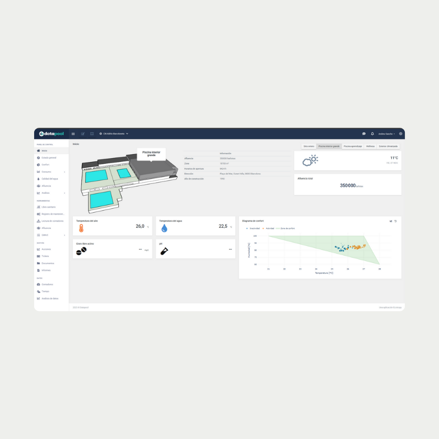 Datapool es una herramienta digital basada en la tecnología de Digital Twins, que supervisa continuamente los datos de su piscina.